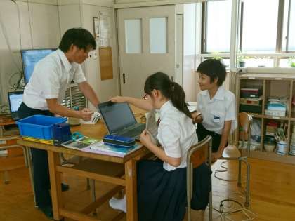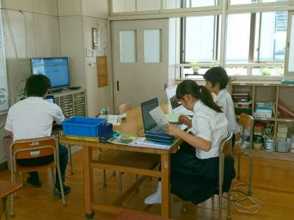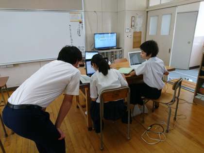 パソコンを使った授業展開です。Excelのセルに文字を入力しています。指示された内容を聞いてローマ字入力をすすめたり、列幅の変更を練習したりしています。四則演算の話など、Excelの便利な点も授業で学んでいます。
