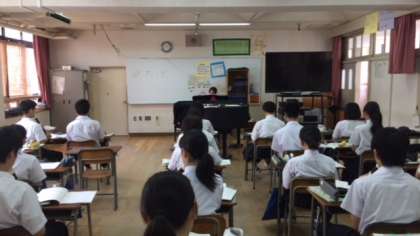 1組、音楽の様子です。授業者は青木先生です。