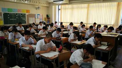 5限 3年生は、放送で曲を聞きながら合唱コンクールの自由曲を選曲しています。