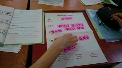 「付き合うならどんな人?」というテーマで、交際について班で話し合って考えています。