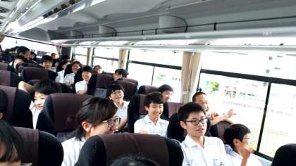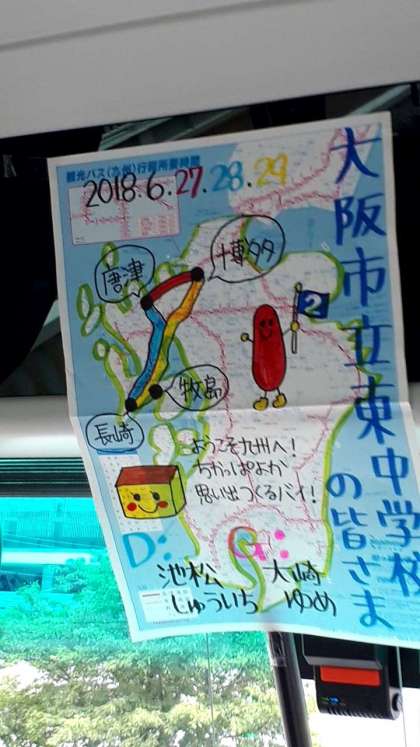 出発しました!2組はバスガイドさんの軽快な博多弁の案内に、発車と同時にもう盛り上がっています!