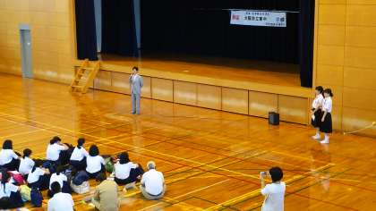 校長先生のお話、生徒代表挨拶の様子です。