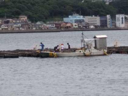 魚の養殖をされているお家へ行き、海でお手伝いをしています!