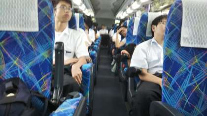 民泊体験で緊張もあったのか、バス内で音楽を聴きながら寝ている人も多いです。