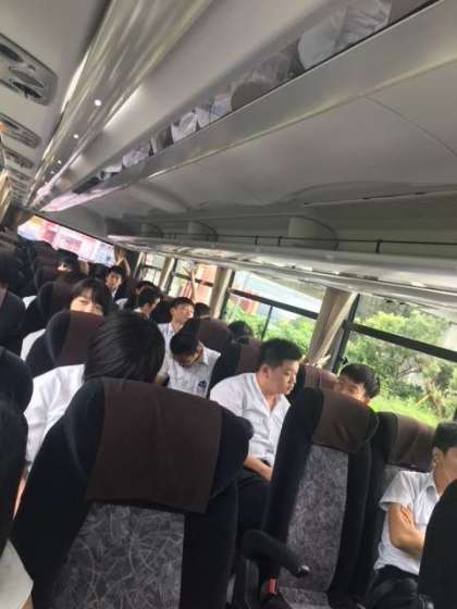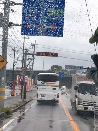 バスは佐賀県から長崎県に入り、長崎道を走っています。雨が降っています。