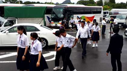 小雨が降っていますが、長崎に着く頃には、昨日同様に、東中生のパワーで吹き飛ばしてくれるでしょう!