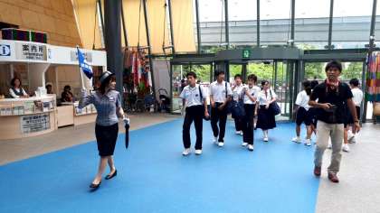各フィールドワーク班に分かれて、原爆資料館を見学します。