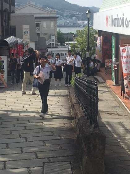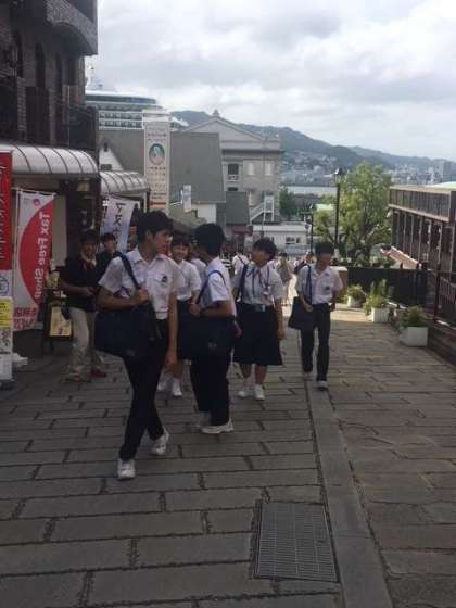 まだ大浦天主堂下にはたくさんの東中生がいます。