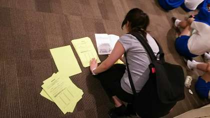 保健室の富先生が健康調査の集約をしてくださっています。