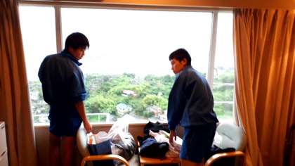 ふとある部屋を覗くと、漫才コンビが景色を眺めていました!
