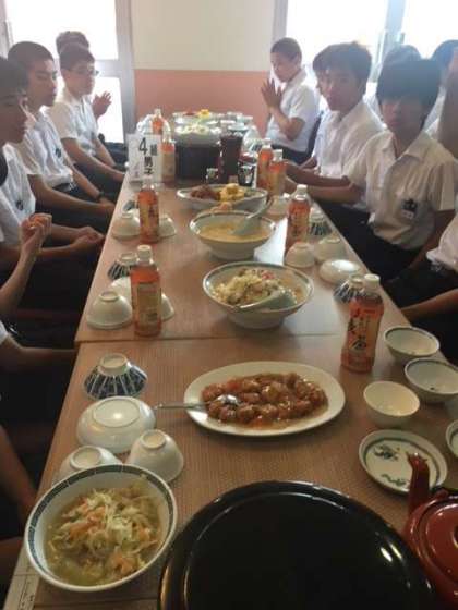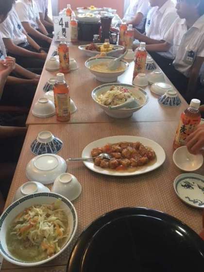 チャンポン、唐揚げ、酢豚、卵スープ、胡麻団子。おいしそうです。