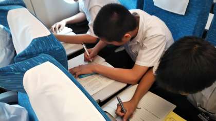 おかしタイムの前に、修学旅行をきちんと振り返っている人もいます。