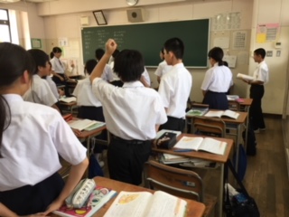1組は「島耕作」2組はバスと赤ちゃん」3組は「語りかける日」4組は「銀色のシャープペンシル」5組は「旗」の授業です。