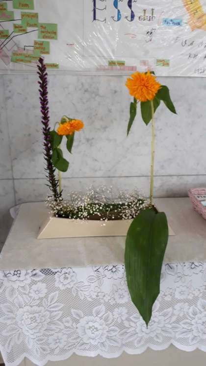 東中ホールには、「涼を求めて」をテーマに、夏らしくも、涼しげな花を生けていただいています。