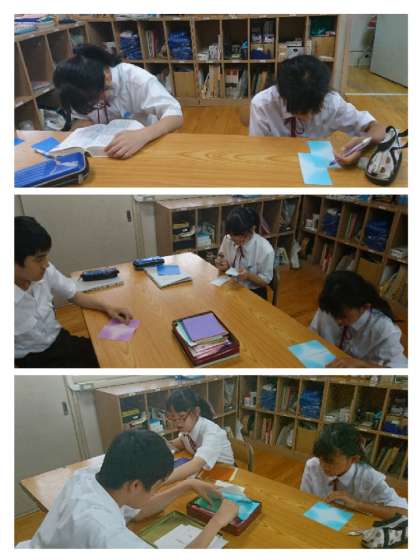 願い事を書くときに、分からない漢字は辞書で調べて書きました。余った時間では、七夕飾りもいくつか作りました。