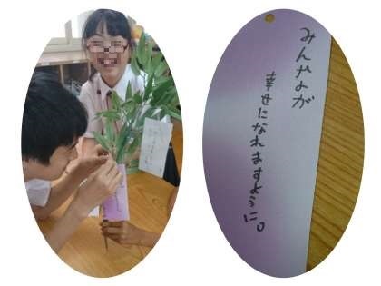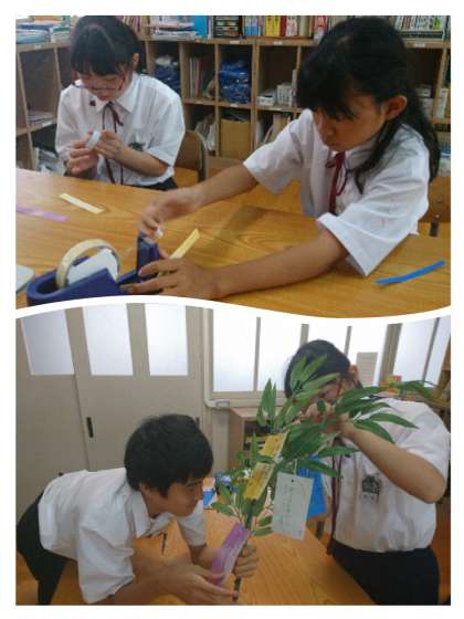 今年も、七夕にむけて短冊に願い事を書いています。