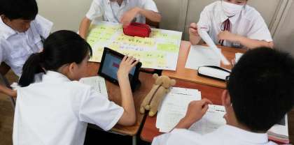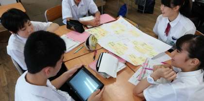 タブレットを使い、調べ学習をしています。