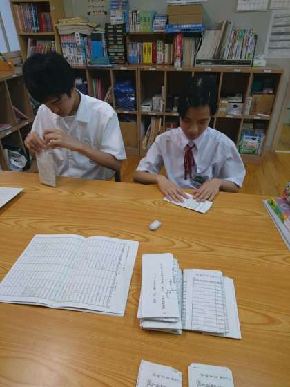 今日は、修学旅行の思い出や、次の3連休の予定などを話しながら、作業しました。