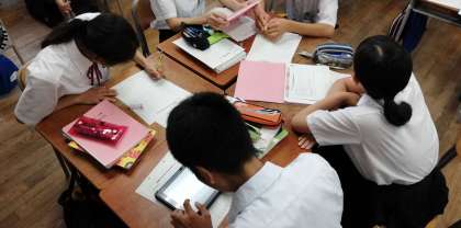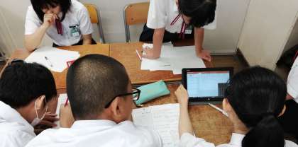 タブレットを使用して、調べ学習をしています。