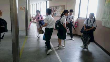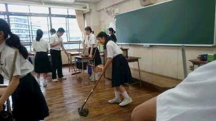 そろそろ終わったクラスの美化委員がモップと油の入っていたヤカンを返却に行って終了です。