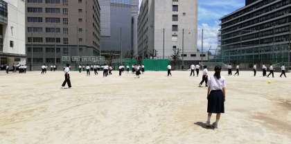 今週は猛暑が続くようですが、東中生は元気よくグランドで遊んでいます。