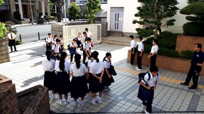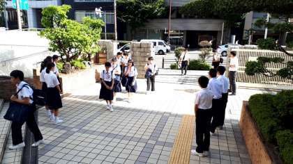 今朝は朝から猛暑です。生徒会の皆さんが汗を流しながらも、暑さに負けず、あいさつ運動に取り組んでいます!