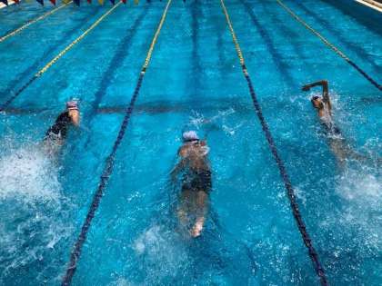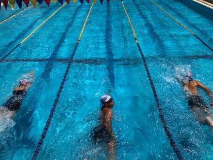 1年生の体育では本日もプールで水泳を実施しています。まさに真夏日和の今日は一段と子どもたちも元気に水泳に取り組んでいます。毎回実施している記録測定も少しずつタイムが向上してきました。頑張れ1年生!