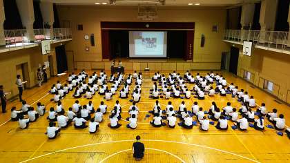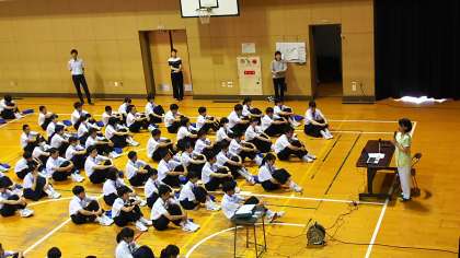 6限 3年生は体育館で看護師の先生を講師にお招きして『性教育講演会』が行われています。