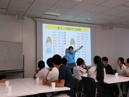 小、中、高校生が集まり、アンケート結果をもとに自分達のスマホ事情について話し合いました。と、書くと、固い雰囲気のように思いますが、最初に大学生がアイスブレークを行ってくれたこともあり、初対面とは思えない盛り上がりでした!