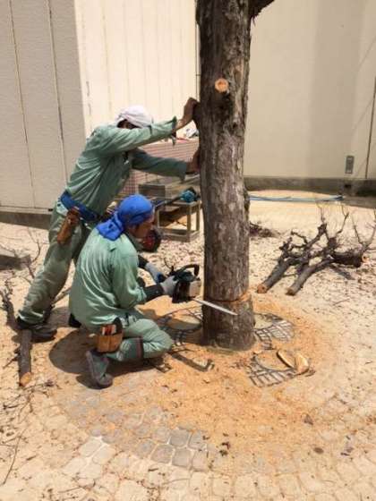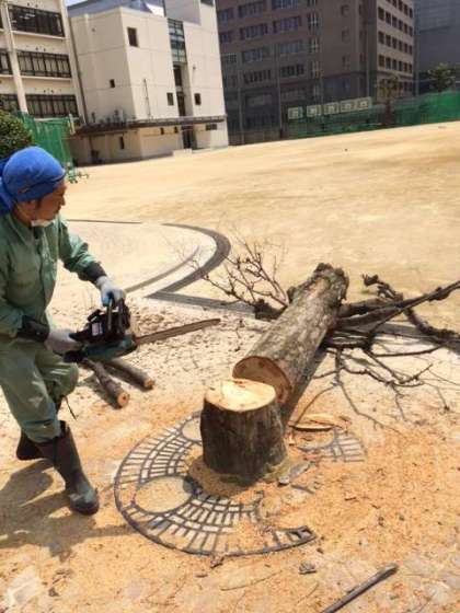 以前から枯れていたこともあり、本日朝から管理作業員さんが伐採作業をされています。