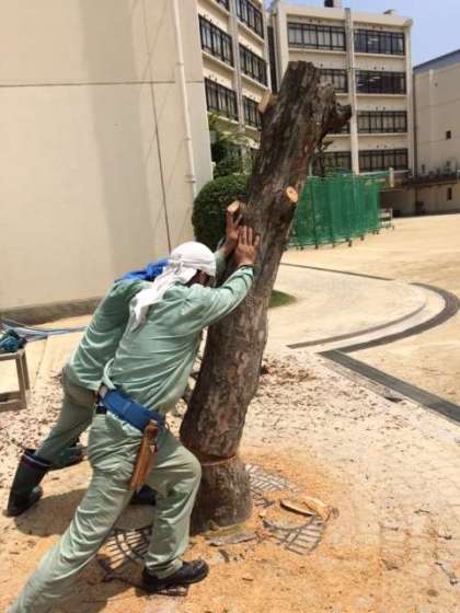 時間をかけて慎重に作業を進めるうちに、ついに伐採することができました。