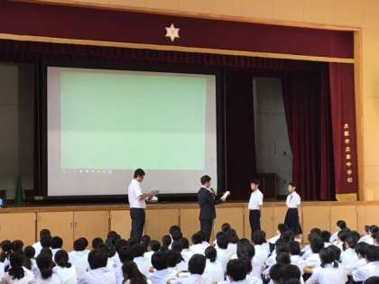 表彰状の伝達、西垣先生からの話、校長先生からの話がありました。夏休みは弱い自分に負けないように、そして、人に迷惑をかけないことを意識して過ごしましょう。