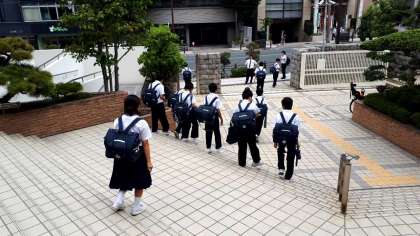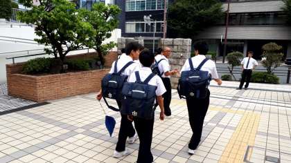 終業式、美化活動、学級活動と1学期最後の行事を終えて、東中生が下校します。