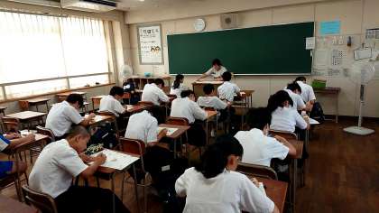 本日より1週間2年生は夏期学習会として英語と数学の補習授業を行っています。少しでも苦手を克服して2学期に向けて頑張ってください!1時間目は英語です。教科を越えて多くの先生も入っての取り組みとなっています。