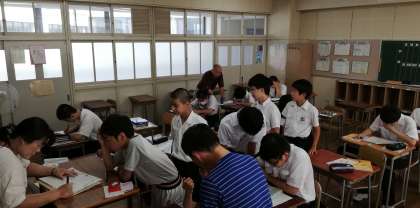 2年生の夏期学習会の様子です。今週月曜日から始まったこの学習会も、いよいよ本日が最終日です。英語?数学と真剣に取り組むことができました。