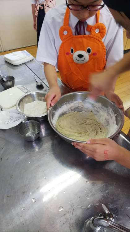 家庭科部では調理実習で豆腐ドーナツを作りました。