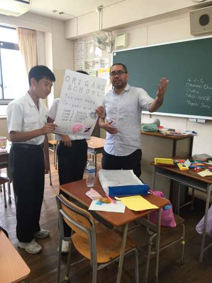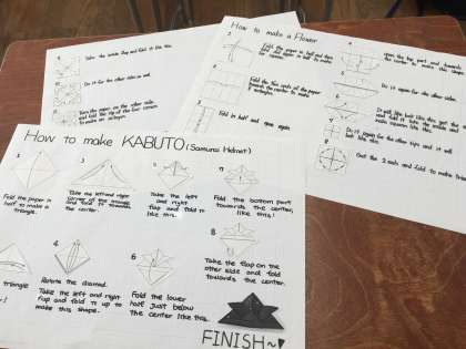 折り方の説明プリントもとてもステキに仕上がりました。アーネスト先生に教わって、外国人観光客への声かけを練習しています。
