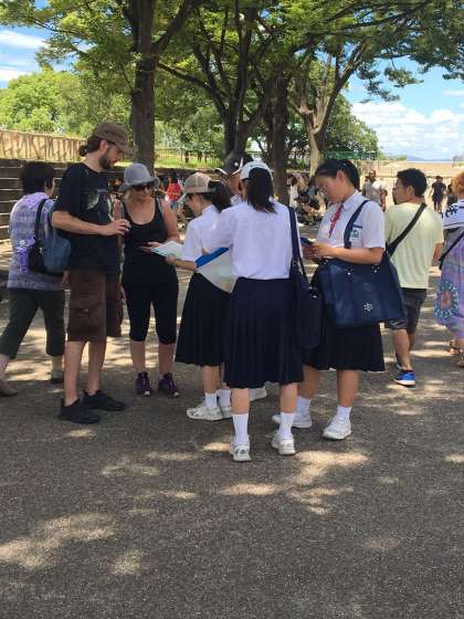 インタビューもラストスパート。どんどん声をかけます。インタビューの最後に、記念撮影をしています。自分のカメラでも撮って欲しいと、何組にも頼まれました。