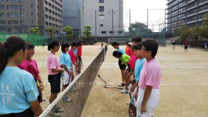女子は、1年生も交えての団体戦を行っています。雰囲気良く暑さに負けず元気に練習に励んでいます!