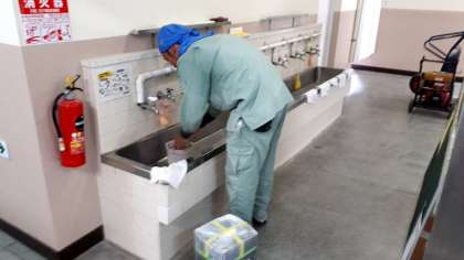 8月13日(月)〜15日(水)の3日間の学校休業期間を利用して、管理作業員さんの中野さんと室本さんが、職員室等の壁面塗装をしてくださいました。廊下も、とても明るくなりました。