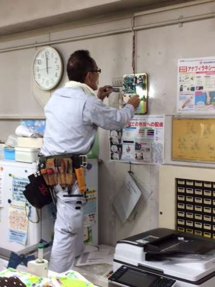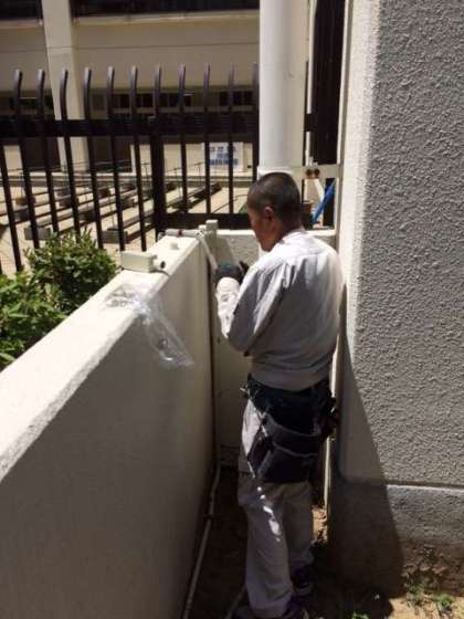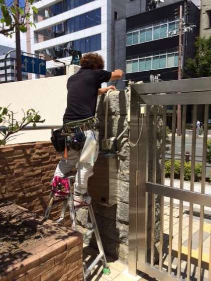 先日より調子が悪く、応急処置をしてもらっていた正門横の小門オートロックですが、本日朝から業者の方々に来ていただき、本格的に修理をしていただいています。