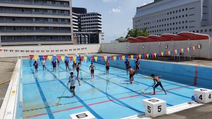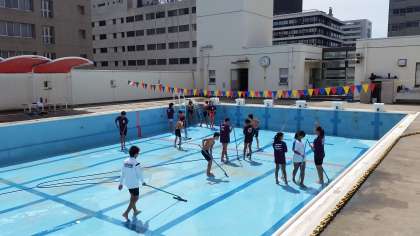 2回目のプール掃除です。みんな一生懸命掃除しています。
