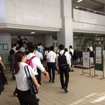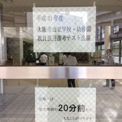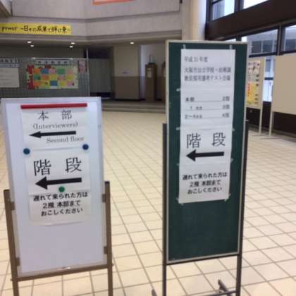 今日は東中で平成31年度大阪市公立学校・幼稚園教員採用選考が行われ、英語科と美術科の実技テストが実施されます。