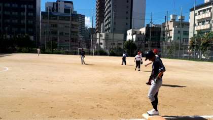 1回戦、開平小PTAとの対戦は、東中PTAチームが圧倒し、17対3の大差で勝利しました!