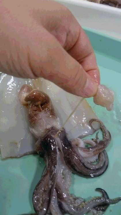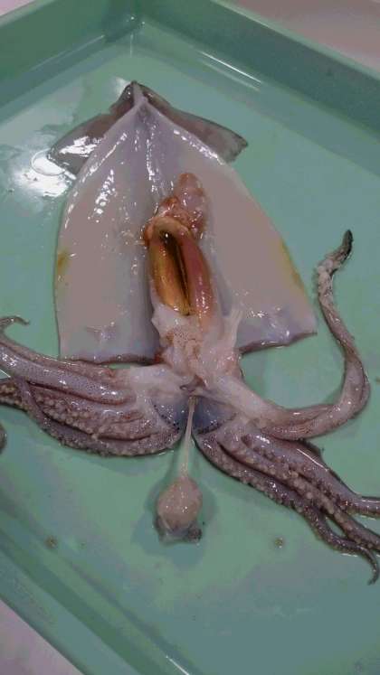 イカの食道は、脳の真ん中を貫いています。(口と消化管の間に頭があるため)