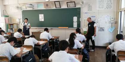 社会科担当の山田先生がそれぞれの教室を見てまわっています。