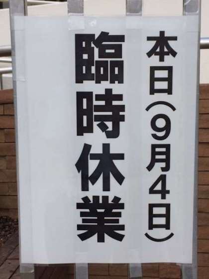 台風21号の接近に伴い、本日は臨時休業となっています。
