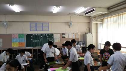 本日の6限目は月曜日に引き続き、各学級の応援グッズ作成等に取り組んでいます。