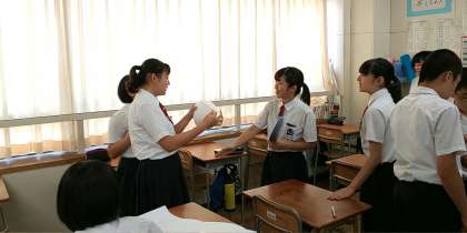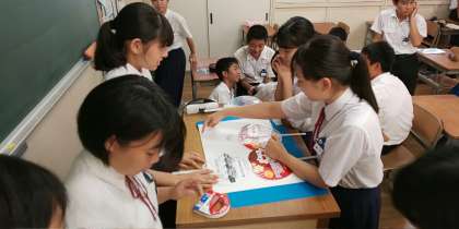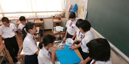 6限 各学級では体育大会の役割ごとに別れて、応援練習、応援グッズ、学級旗の作成に取り組んでいます。