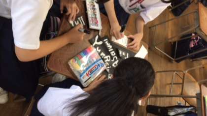 3組、スローガン・応援グッズのうちわなど、丁寧に作っています。